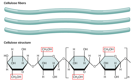 Although energy storage is one important role for polysaccharides, they are also crucial for another purpose: providing structure. Cellulose, for example, is a major component of plant cell walls, which are rigid structures that enclose the cells (and help make lettuce and other veggies crunchy). Wood and paper are mostly made of cellulose, and cellulose itself is made up of unbranched chains of glucose monomers linked by - glycosidic bonds.