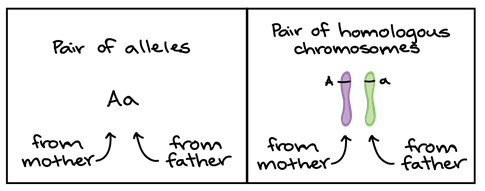Chromosomes, like Mende’s genes, come in homologous pairs in an organism. For both genes and chromosomes, one member of the pair comes from the mother and other from the father.