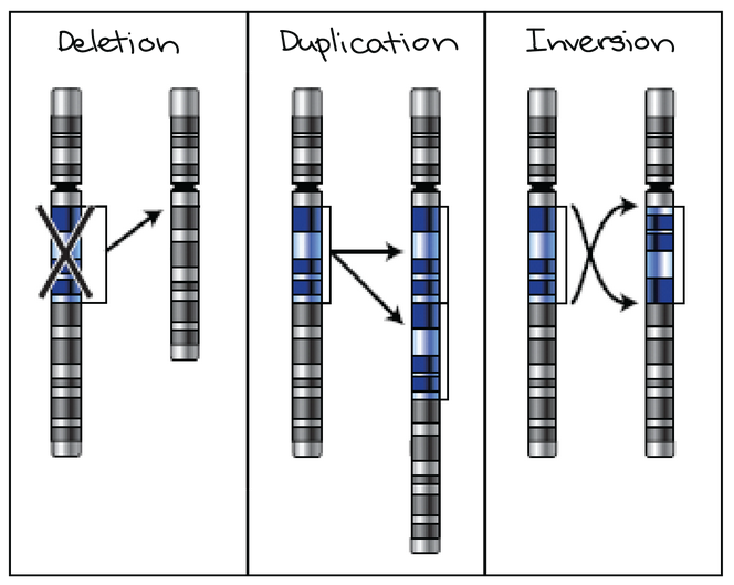 - An inversion, where chromosomal region is flipped around so that it points in the opposite direction.