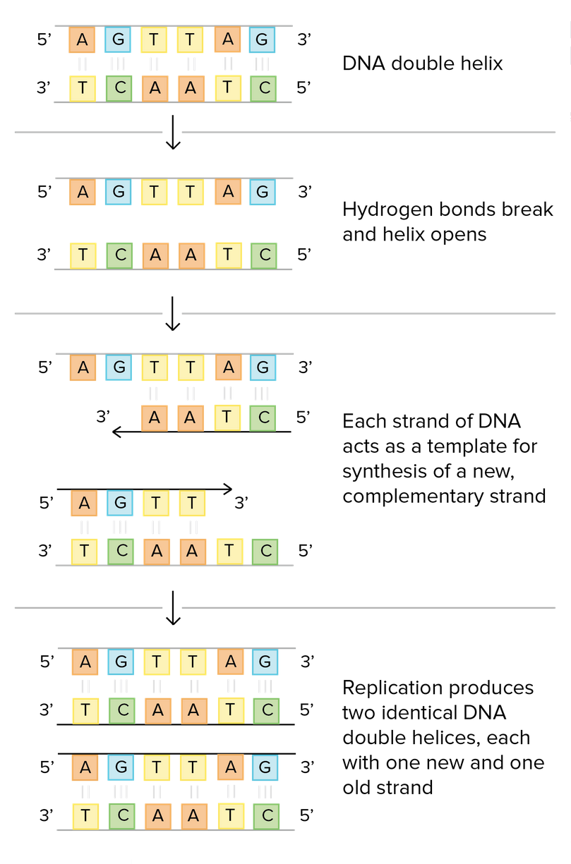 DNA replication is the biological process of producing two identical replicas of DNA from one original DNA molecule. DNA replication occurs in all living organisms acting as the most essential part of biological inheritance. This is essential for cell division during growth and repair of damaged tissues, while it also ensures that each of the new cells receives its own copy of the DNA.