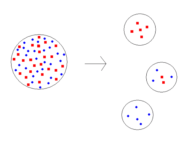 In the figure above, you can see a population made up of equal numbers of squares and circles (assuming an individual’s shape is determined by its alleles for a particular gene).