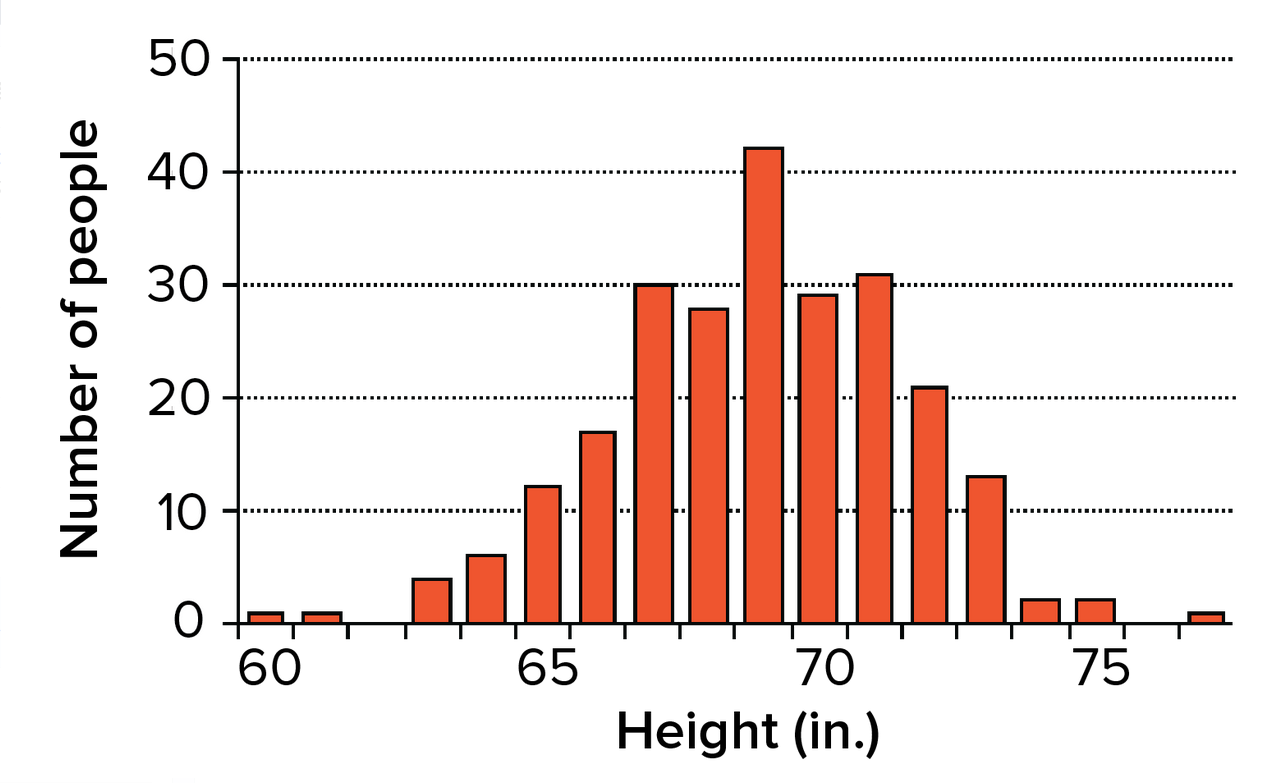 In some cases, different phenotypes in a population are determined by just one gene. However, in many cases, phenotypes are controlled by multiple genes that each make a small contribution overall result. Such phenotype are often called polygenic traits, and they typically form a spectrum, taking many slightly different forms. Plotting the frequency of the different forms in a population often results in a graph with a bell curve shape. Height (see graph below) and many other traits in humans are polygenic.