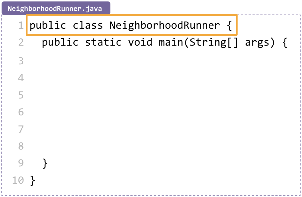 The class header consists of the class keyword and the name of the class. The name of the class and the file name must be the same.