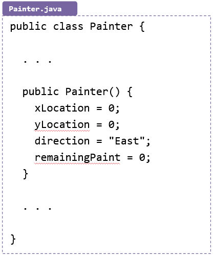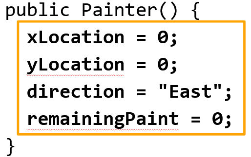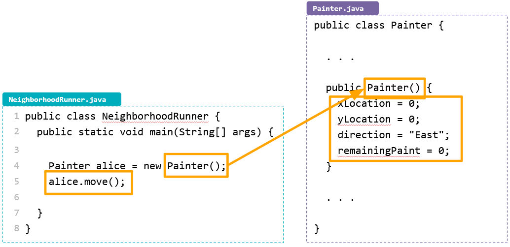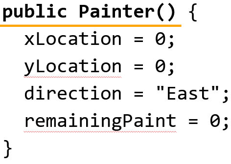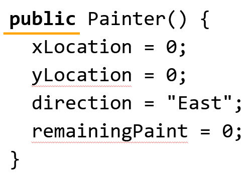 - Painter() calls the constructor in the Painter class to create the Painter class.