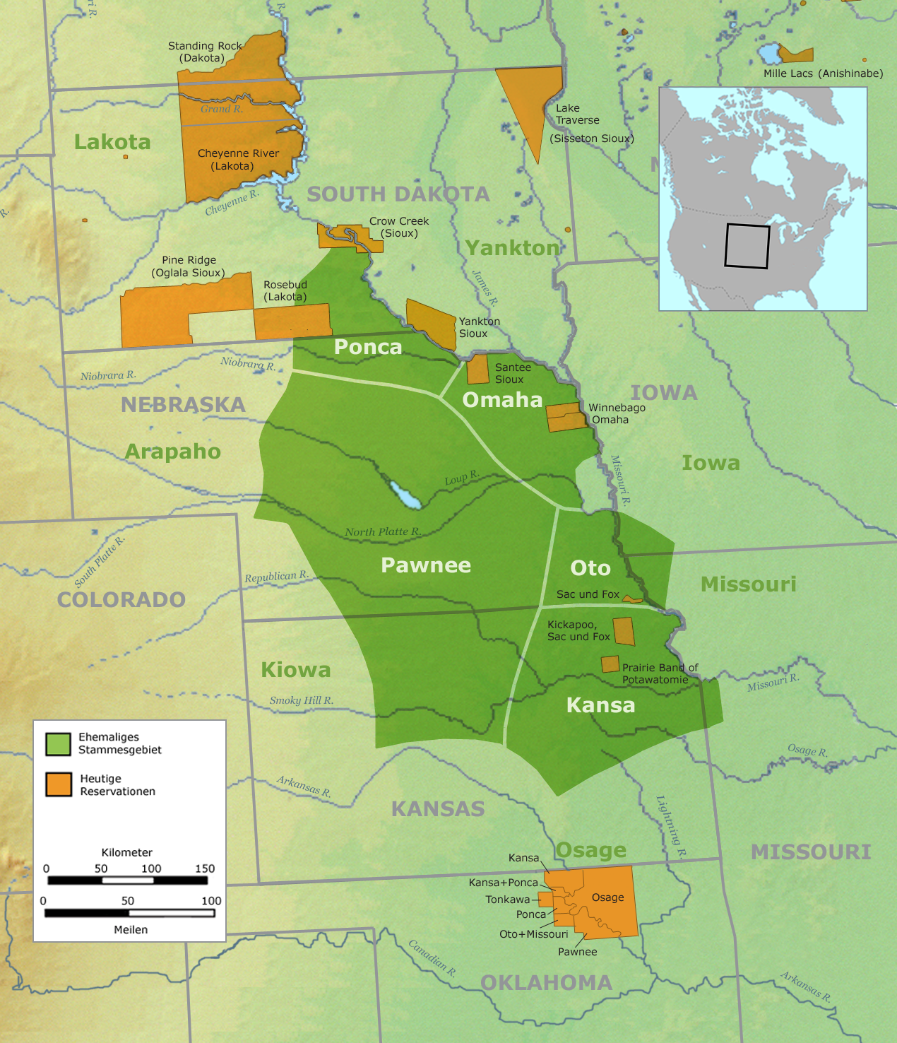 The Plains region spreads to the east of the Rocky Mountains, up to 400 miles across the flat land of the center of the present-day United States. The Plains were very sparsely populated until about 1100 CE, when Native American groups including Pawnees, Mandans, Omahas, Wichitas, Cheyennes, and other groups started to inhabit the area.