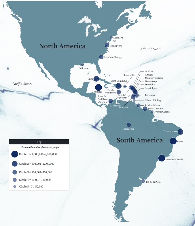 In theory, a ship could make its way from one continent to another laden with cargo that would be prized in the next port: buying enslaved laborers on the coast of Africa, sailing to Barbados to sell enslaved people and buy sugar, sailing to England to sell sugar and buy guns, and then sailing to the coast of Africa to sell guns and buy more enslaved people.